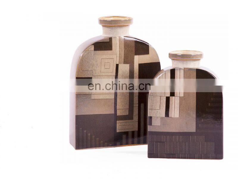 Japanese Style Modern Simple Hand Painted Modern Geometric Black Ceramic Vase Floor Vase for Home Decoration