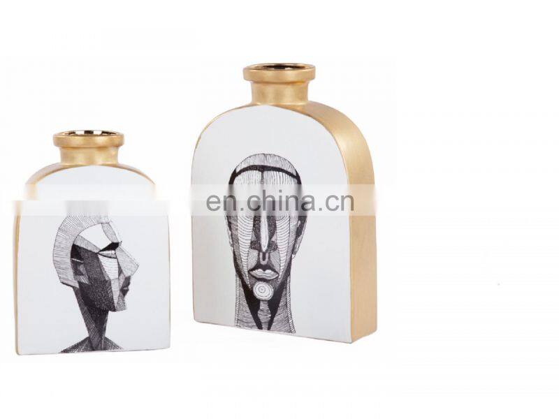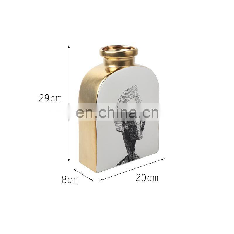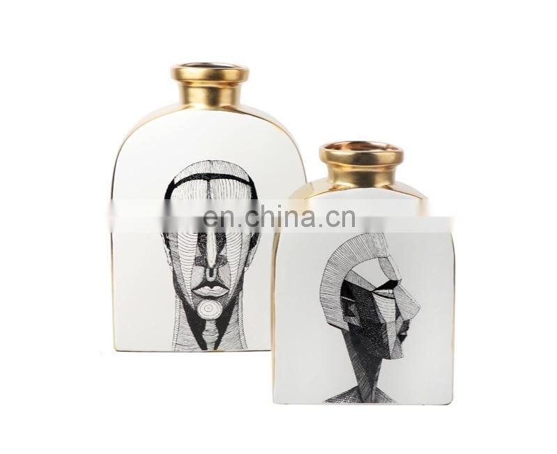 Modern Nordic Light Luxury Tabletop Golden Silver Portrait Head White Ceramic Home Decoration Flower Vase