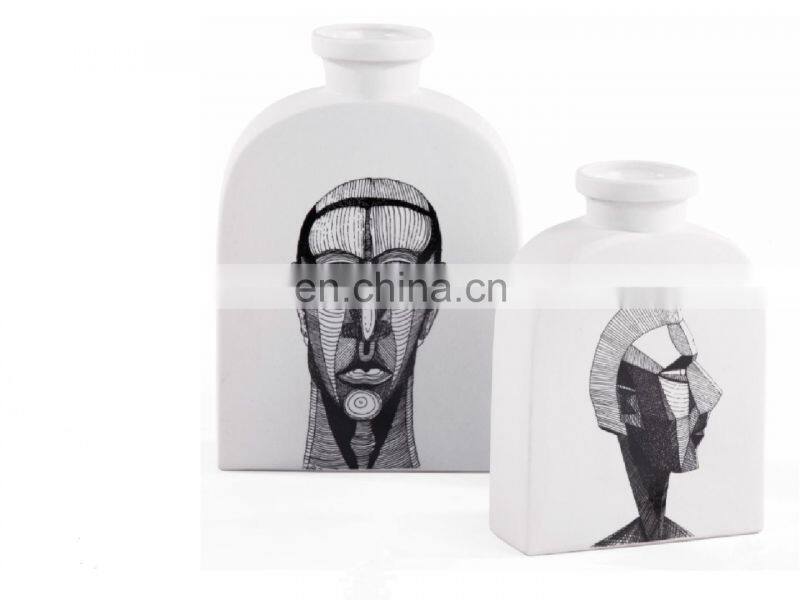 Hand Drawn Series Black Grey Colourful Hand Painted 3D Porcelain And Ceramic Vases For Home