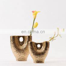 Golden Modern Style Creative Flower Arrangement Golden Porcelain Ceramic Vase For Table Decoration