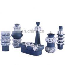 Modern Handmade Hot Sale Matt Blue With White Ceramic Porcelain Vase For Home Or Office Decoration