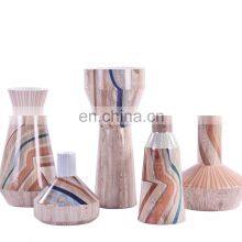 Wood Grain With Blue Line Ceramic Vase Table Porcelain Vase for Home Decoration