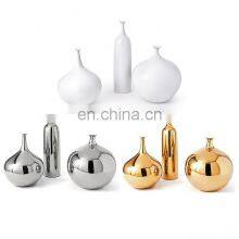 Luxury Round Shape Gold And Silver And White Table Ceramic Porcelain Vase For Home Decoration