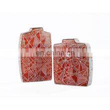 Central Asian Style Geometric Pattern Hand Drawn Series Red And White Ceramic Vases For Home Decor
