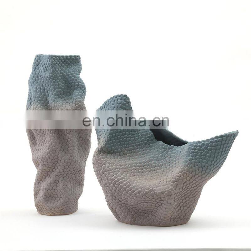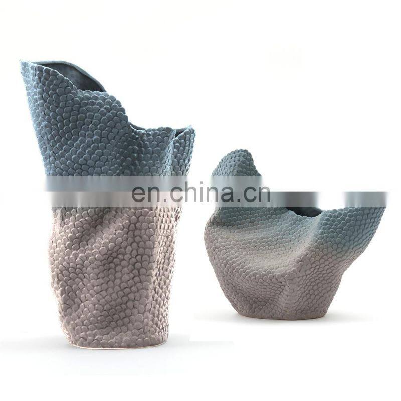 New Style Irregular Surface Folds Gradient Color Living Room Decor Ceramic Vase