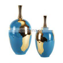 Nordic New Chinese Blue and Golden High Temperature Porcelain Vase For Home Decoration