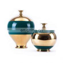 Porcelain Gold And Silver Border Big Belly Small Neck And Small Mouth Dark Green Ceramic Vase Porcelain Vase