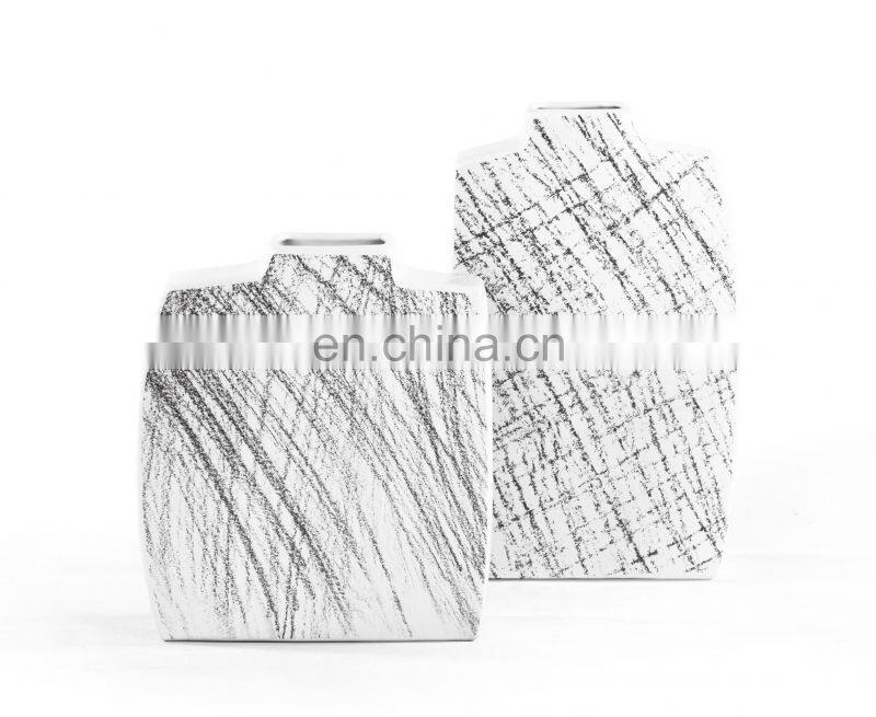 Nordic Minimalist Modern White Ceramic Hand Painted Black Line Vase Decor Home