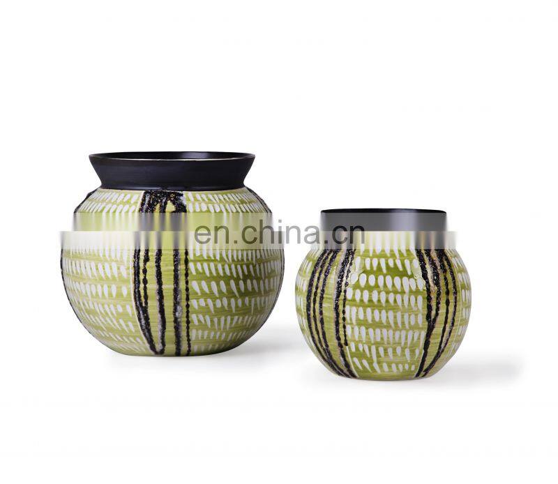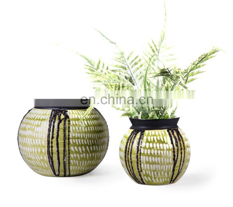 Hand Made Green Decorative Plant Flowerpot Ceramic Vase for Flower Arrangement Home Decoration