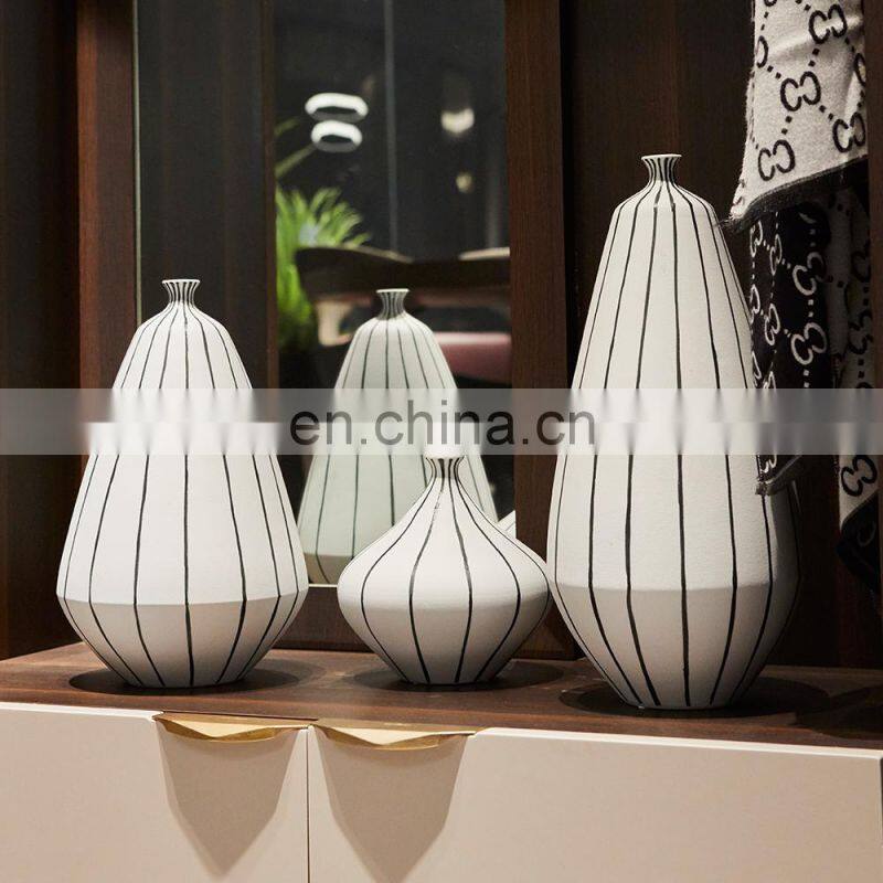 Home > Products > Ceramic Vase > Nordic Minimalist Modern White Ceramic Hand Painted Black Line Vase Decor Home