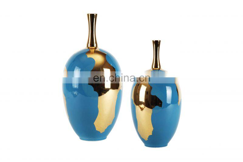 Home > Products > Ceramic Vase > Nordic New Chinese Blue and Golden High Temperature Porcelain Vase For Home Decoration