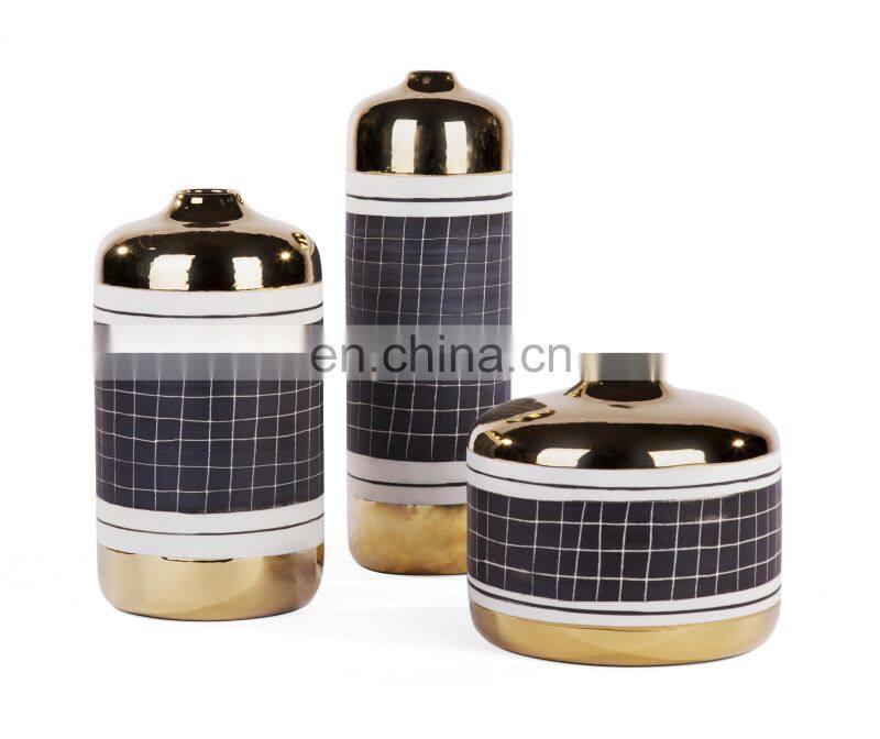 Retro Luxury Round Black Golden Porcelain Ceramic Vase for Home Decoration