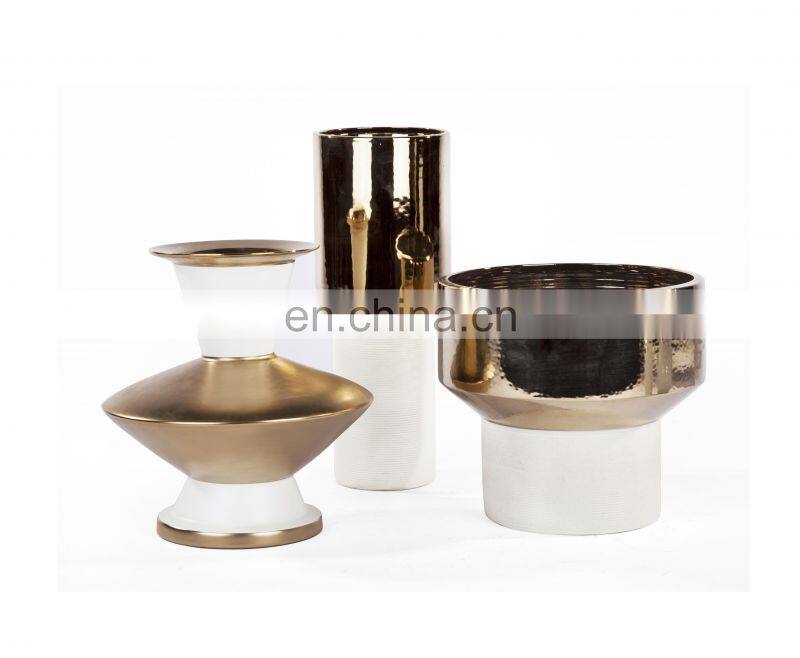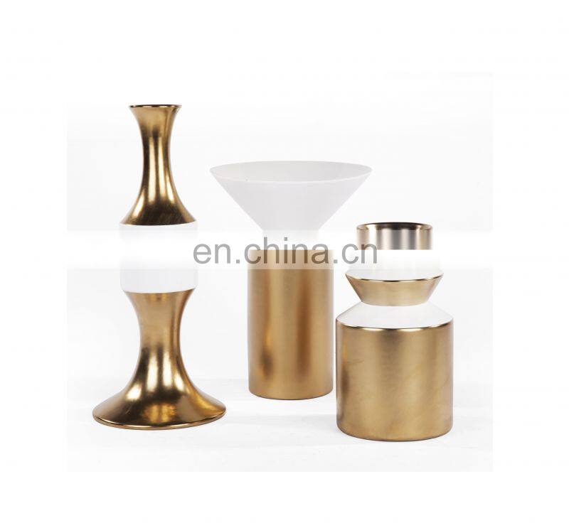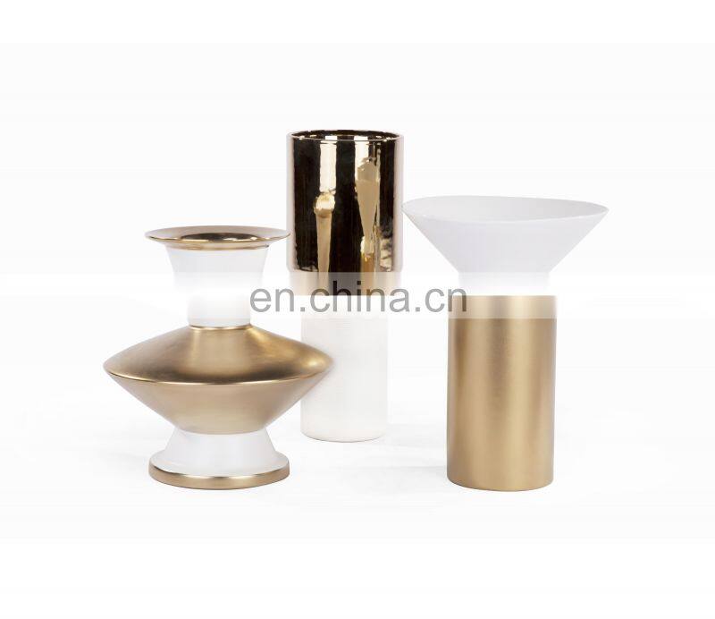 Direct Manufacturer Bright White And Gold Luxury Flower Vases Big Golden Ceramic Vase For Home Decoration