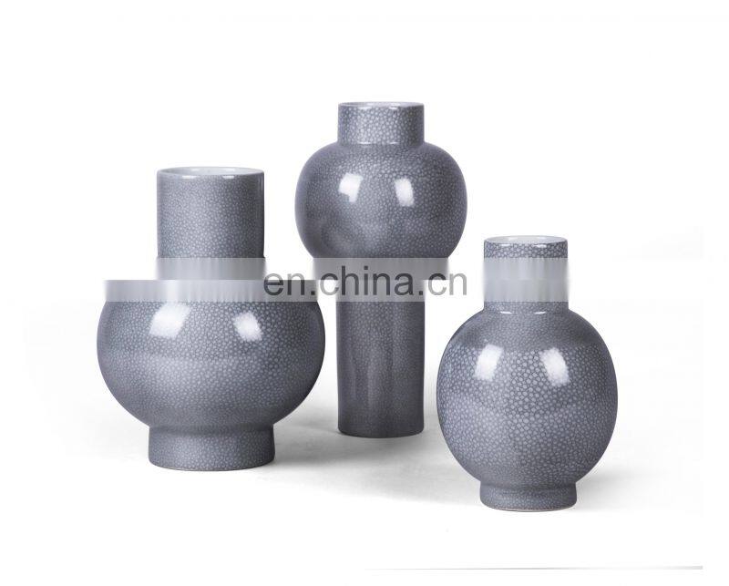 Porcelain Flower Vase Household Decorative Craft Grey Marble Design Pearled Ceramic Vase for Home Decor