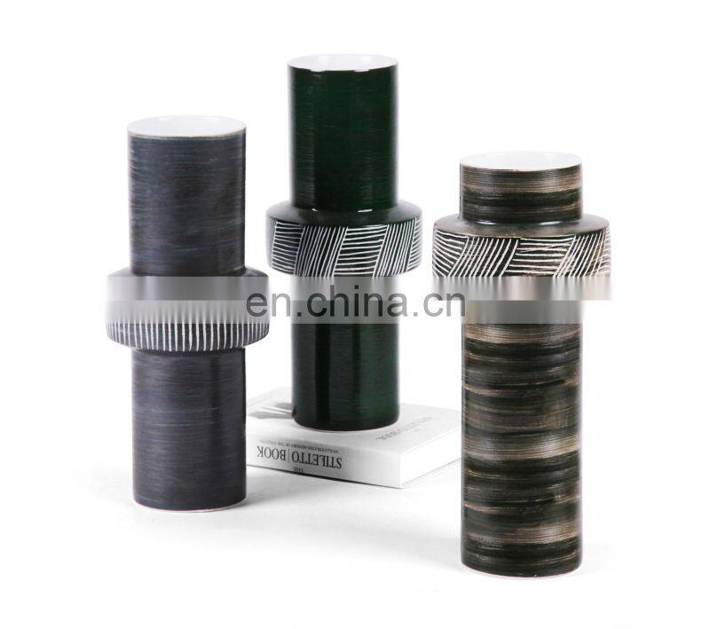 Hot Selling Minimalism Style Decorative Vases Ceramic Dark Grey Design For Home Decor