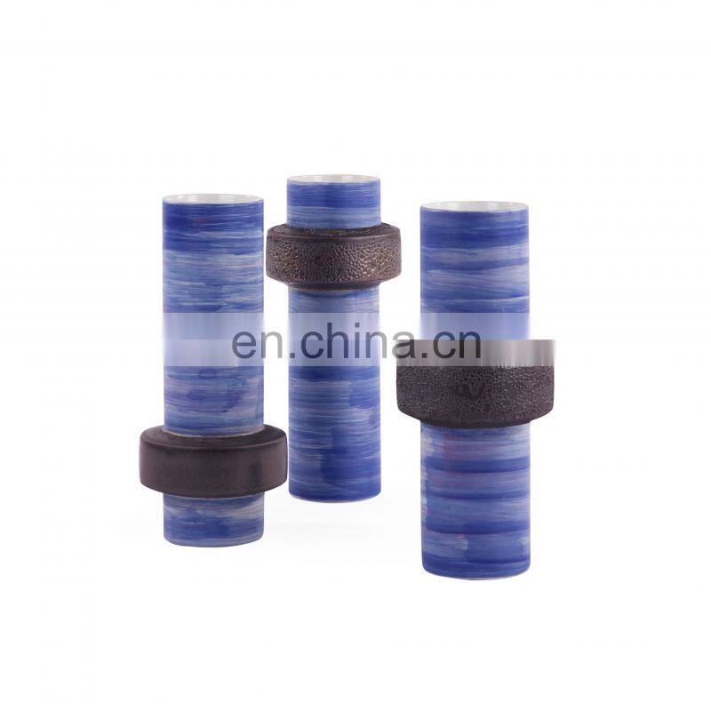 Set 3 Pieces Chinese Style Antique Vintage Ceramic Copper Cover Flower Vase for Home Decor