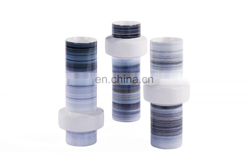 Black And White Stripe Nordic Modern Geometric Ceramic Flower Vase For Home Decor