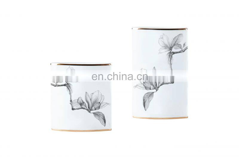 New Chinese Porcelain Vase Set For Flower Arrangement White Ceramic Vase With Golden Pattern Home Decoration