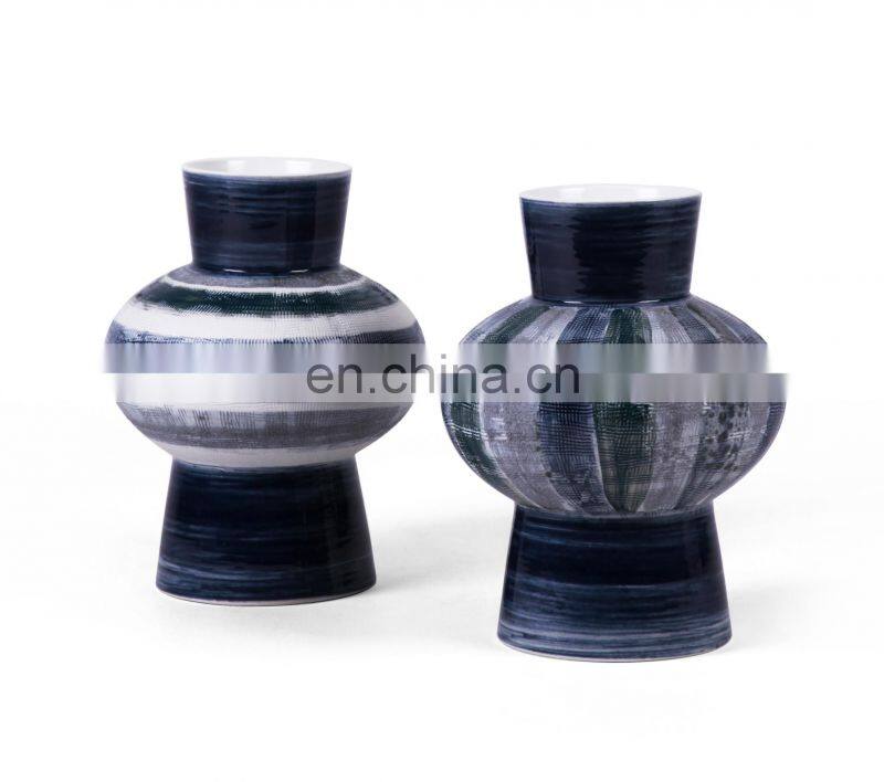 New Chinese Handmade Matt Round Shape Ornaments Blue And White Ceramic Decorative Vase for Flower Arrangement