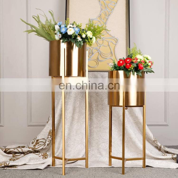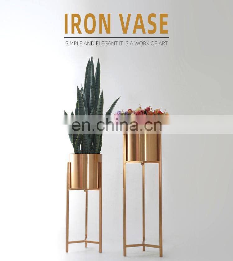 Home > Products > Ceramic Vase > Luxury Iron Stands Brass Color Huge Large Floor Flower Gold Tall Wedding Metal Vase for Decoration
