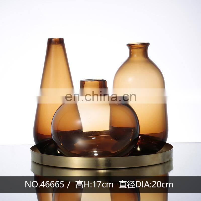 Luxury Home Decoration And Garden Flower Grey Gilded Glass Bottle Vase For Home Decor