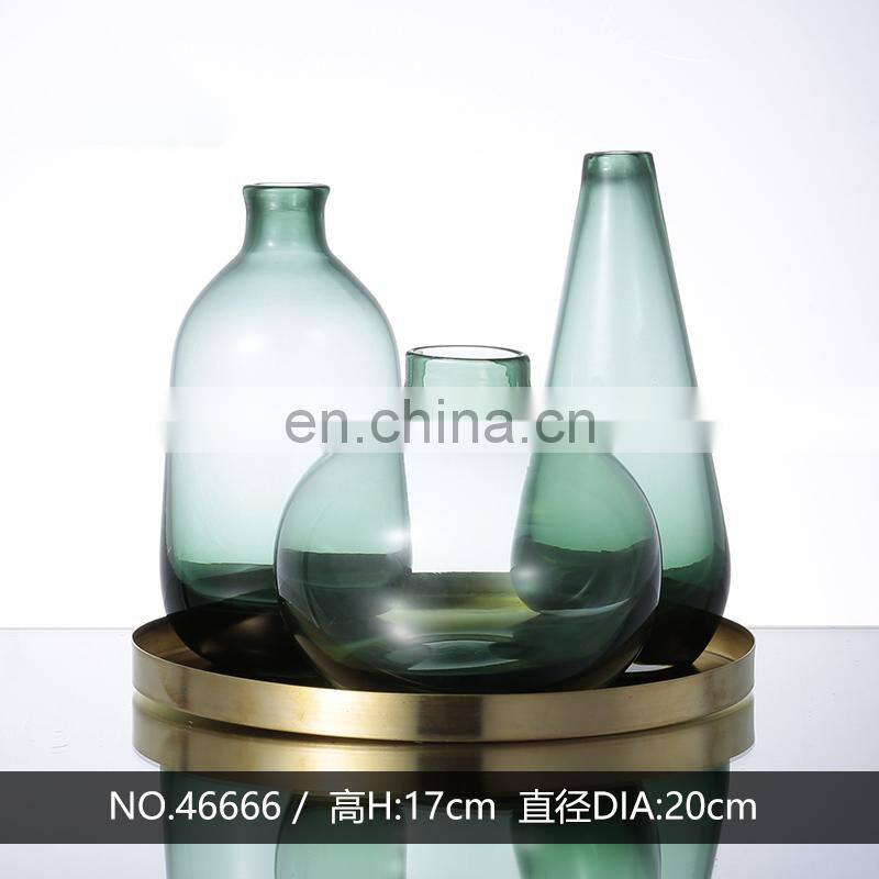 Modern New Nordic Unique Shape Handmade Clear Gray Glass Flower Vases Wholesale