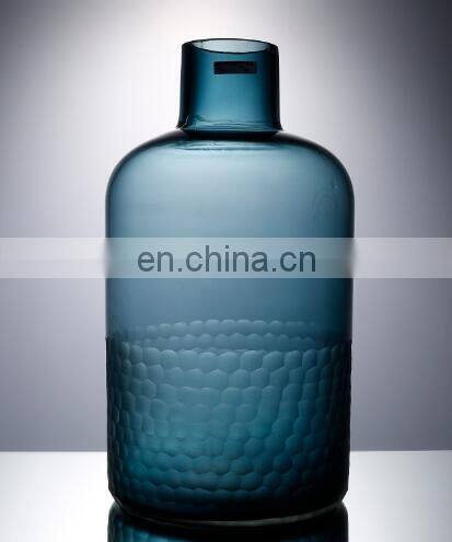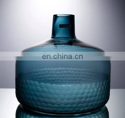 Guangzhou Manufacturer Wholesale Home Table Decoration Blue Glass Jar Vase Set