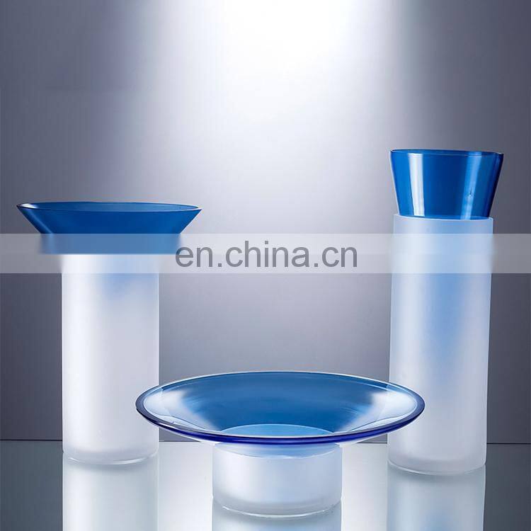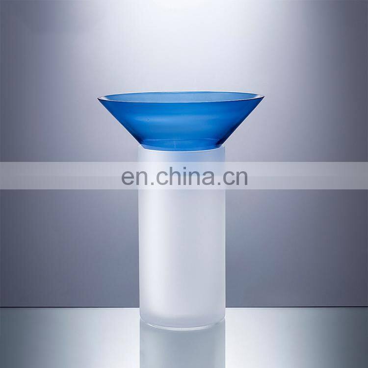 Decorative Modern Transparent Handmade Blue And Pink Color Pattern Glass Vase For Home Decoration