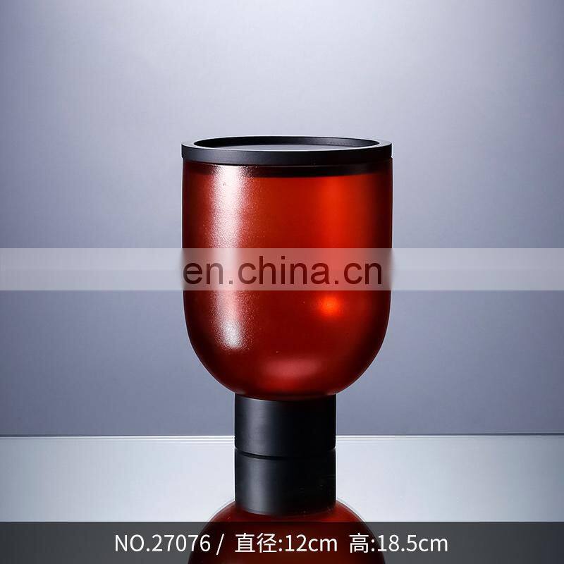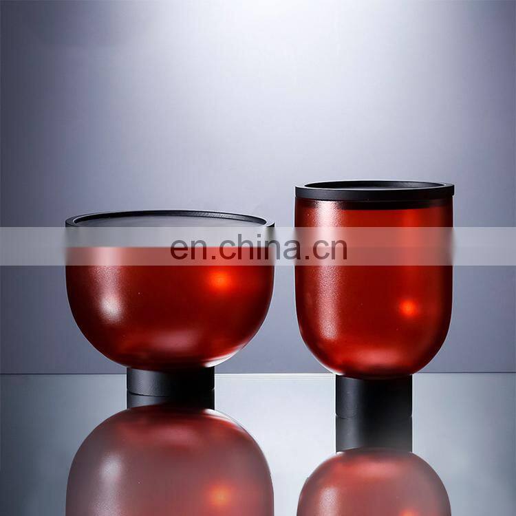 Nordic Style Home Party Decor Candle Wedding Decoration Cup Shape Round Glass Vase Red