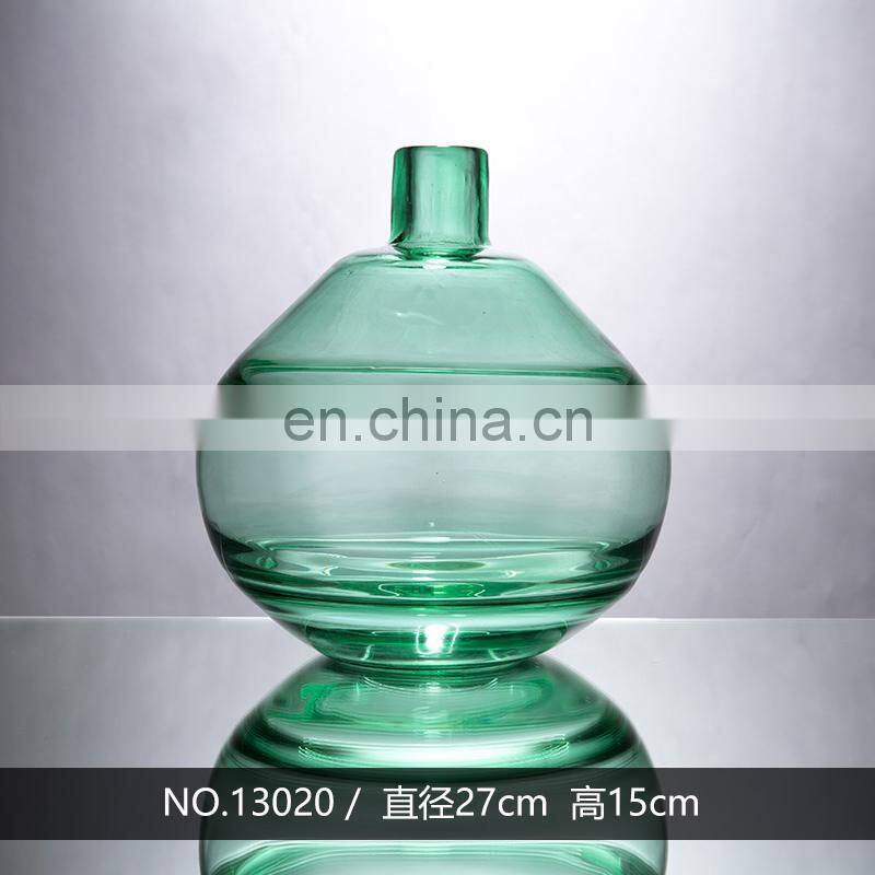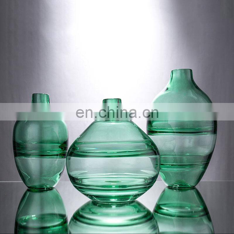 Modern Nordic Regular Shape Green Colored Crystal Glass Vase For Home Decoration
