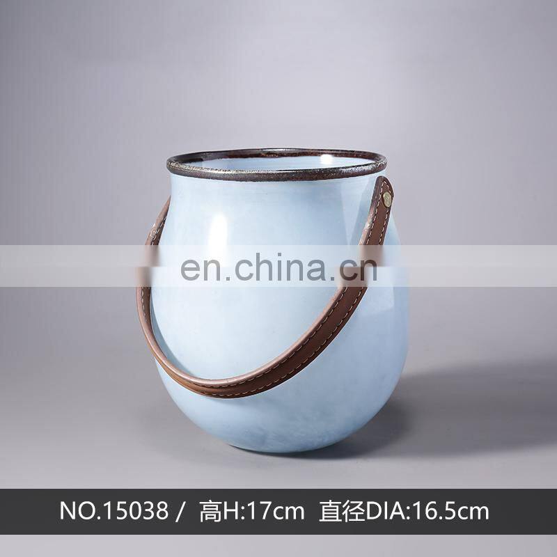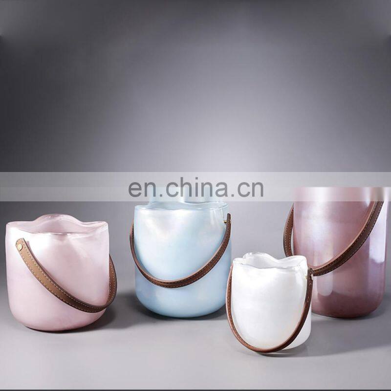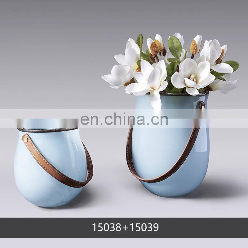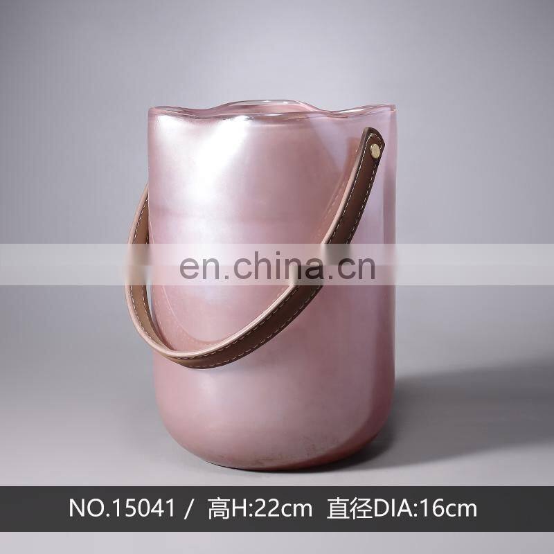 Nordic Table Decoration Flower Arrangement Hand Blow Glass Vase With Leather