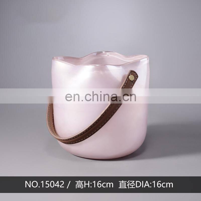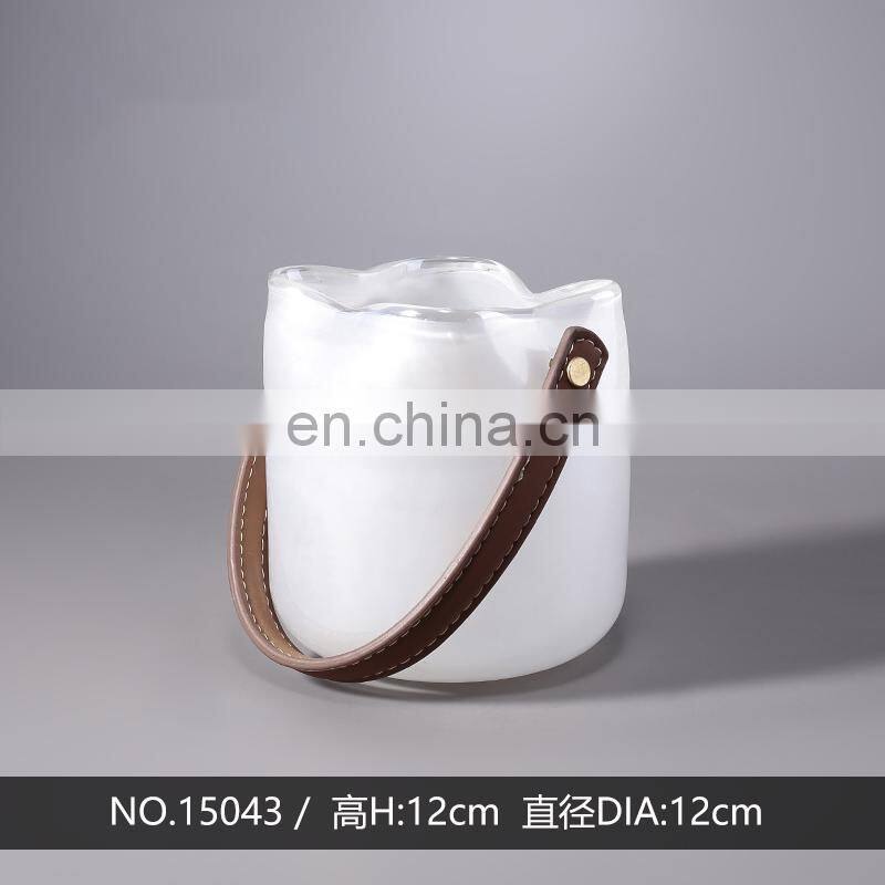 Nordic Decoration Glass Wedding Centerpiece Clear Leather Cover Flower Vase