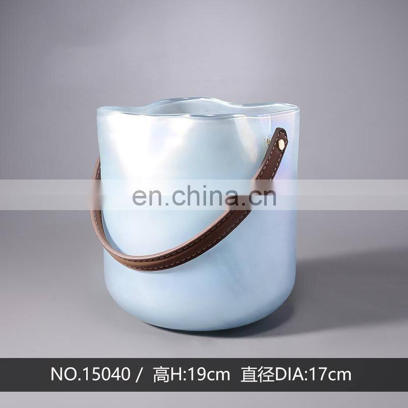 Home > Products > Glass vase > Nordic Table Decoration Flower Arrangement Hand Blow Glass Vase With Leather