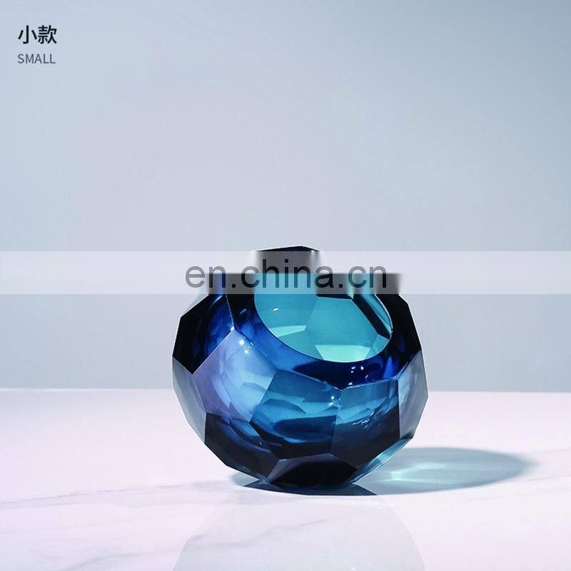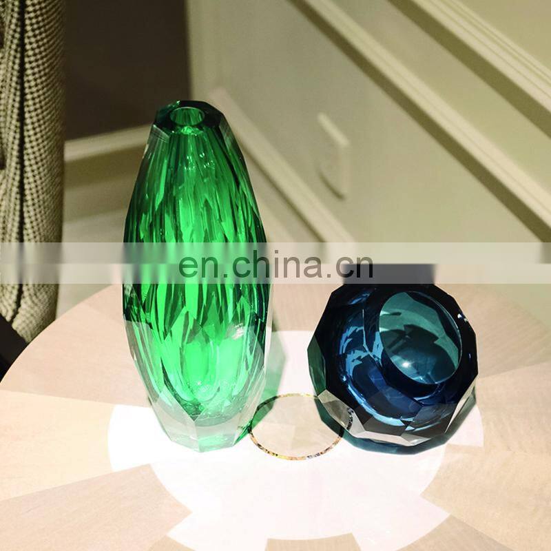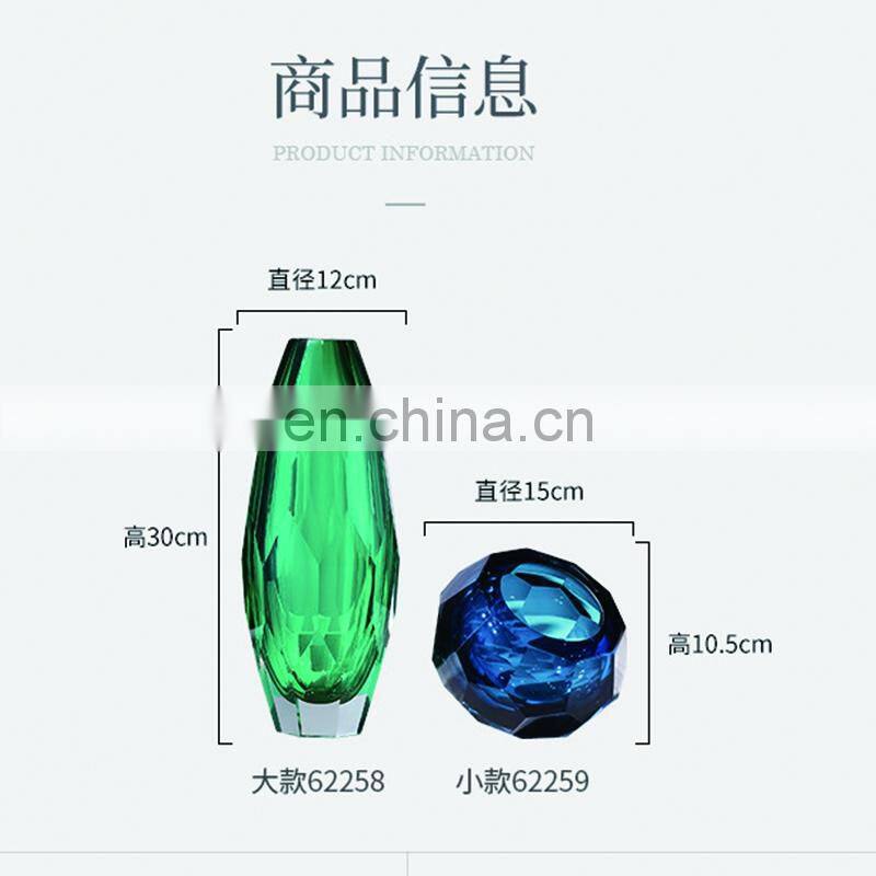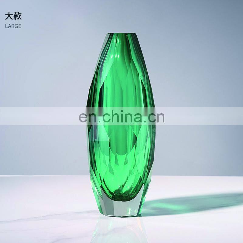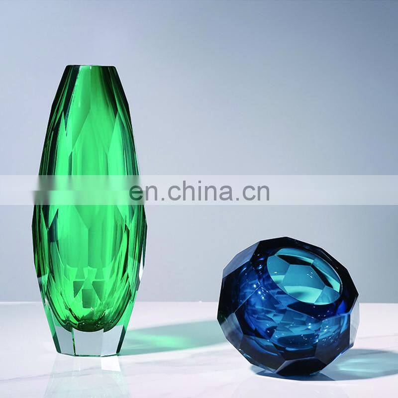 Modern Simple Glass Transparent Green Blue Luxury Crystal Flower Vase