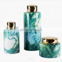 High-end Marble Design Home Decoration Craft Pearled Decorative Porcelain Vase Ceramic Jar With Lid