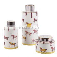 Luxury Horse Series Home Ceramic Porcelain Decor Vase And Jar