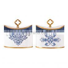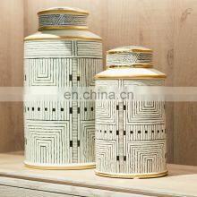 New Chinese Modern Style Storage Table Decor White Golden Ceramic Jar With Lid