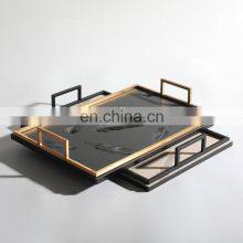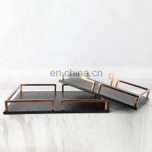 Wholesale Modern Hotel Wedding Interior Square Black Brown Luxury Nordic Iron Leather Decor Tray