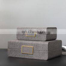 Hot-sell Modern Antique Home Interior Rectangular Beige Luxury Retro Fabric Mdf Brass Jewelry Box