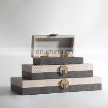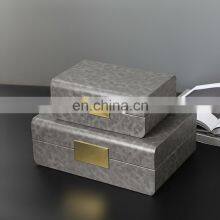 Hot-sell Modern Antique Home Interior Wedding Rectangular Beige Grey Luxury Retro pu Leather Mdf Metal Jewelry Box