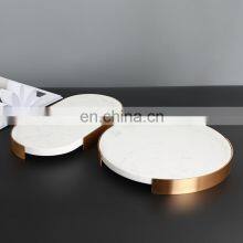 Wholesale Modern Hotel Wedding Interior Round White Luxury Nordic Iron Decor Marble Tray