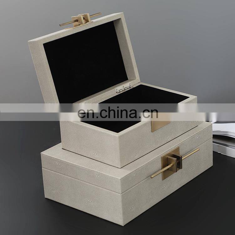 Wholesale Hot-sell Modern Home Interior Milk White Grey Nordic Microfiber Leather Metal Jewelry Box for Home Decoration