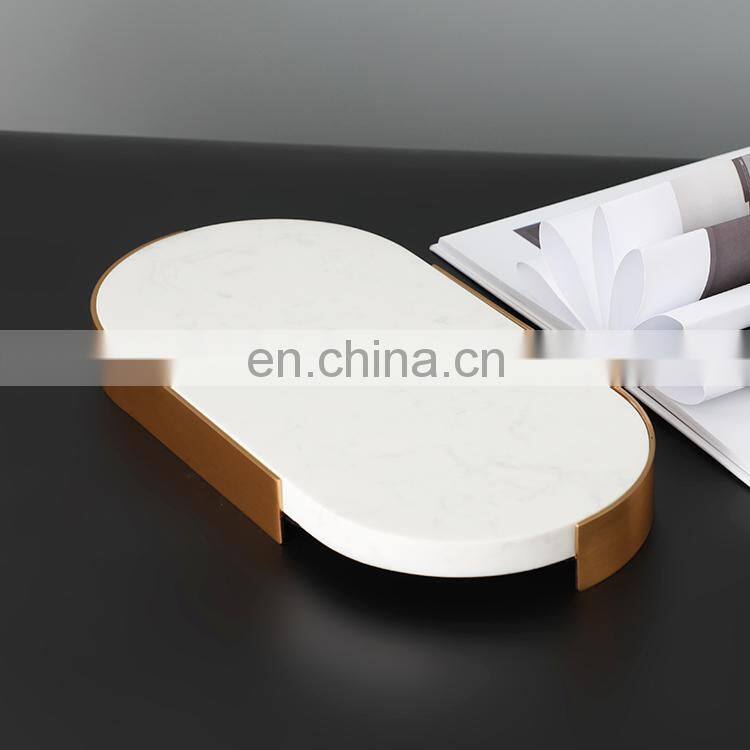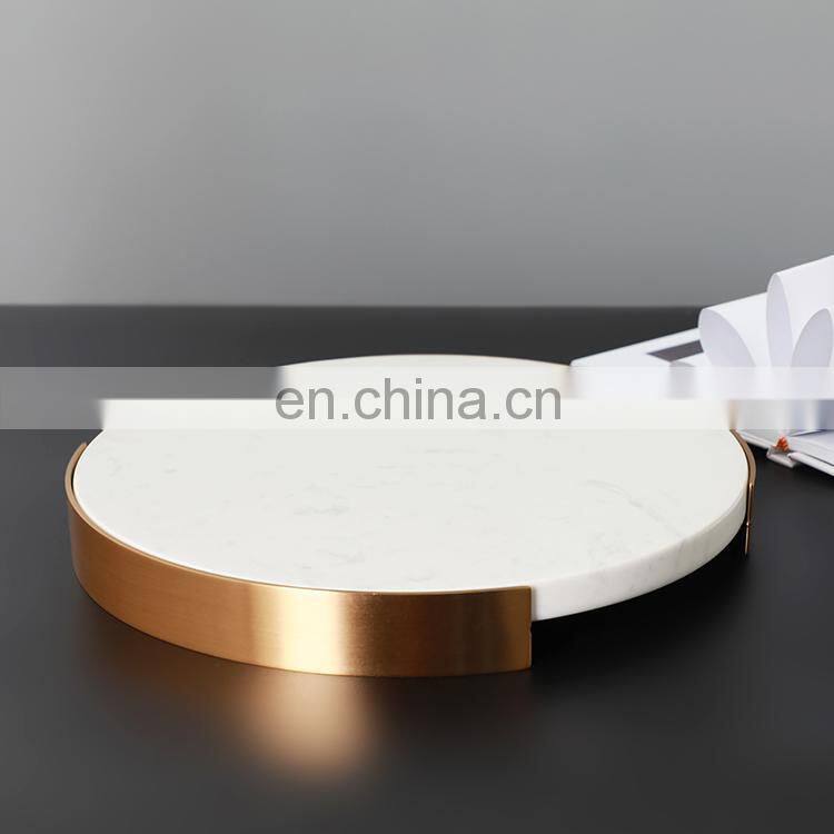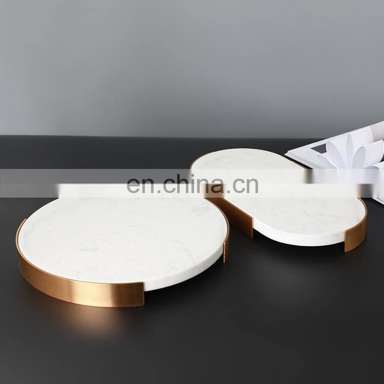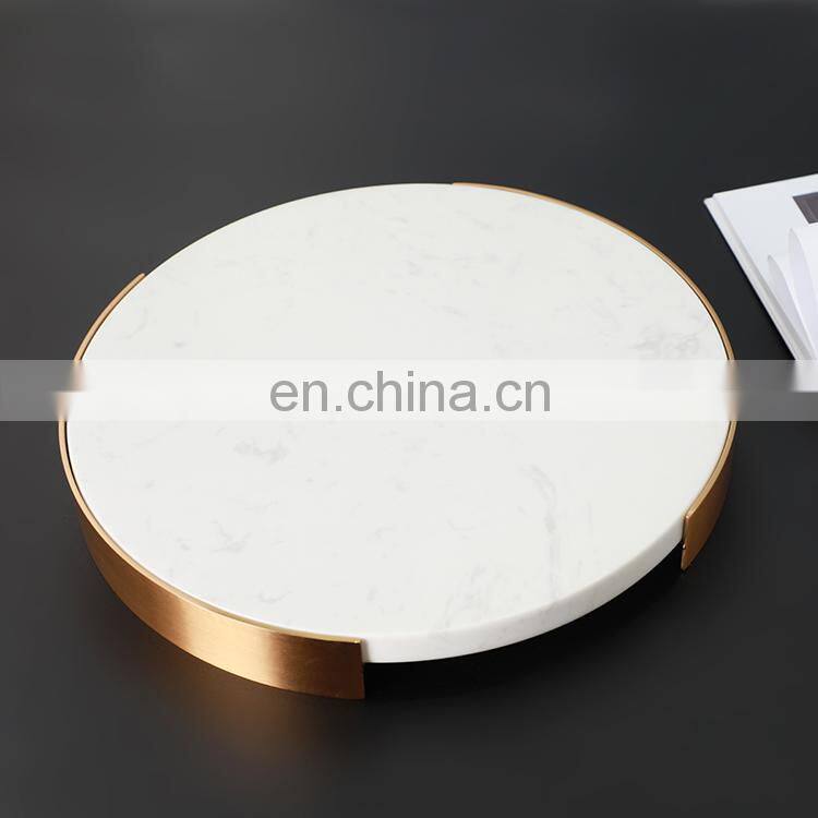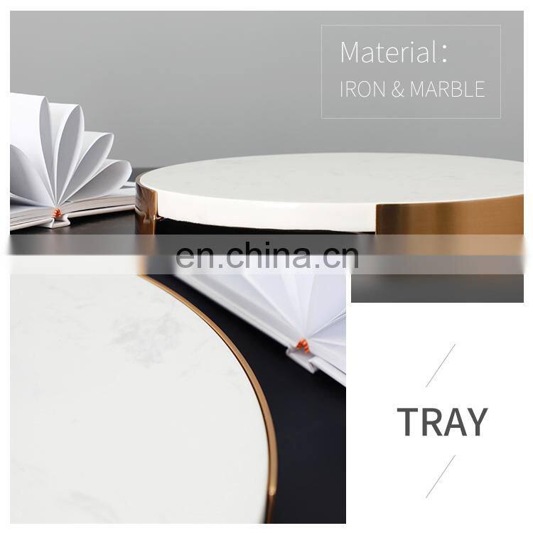 wholesale modern hotel wedding interior round white luxury nordic iron marble decor tray
