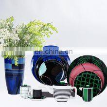 Geometric Green and Blue Modern Family Ceramic Coffee Mug Tea Cup Dinner Plate Ceramic Vase Cup For Porcelain Tableware Set