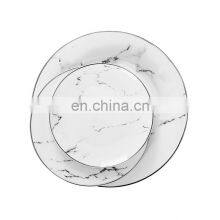 Nordic Unique Gold Rimmed Porcelain Plate Marble Dinnerware Set Round Western Ceramic Cheap Plates