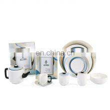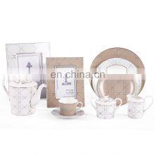 Luxury Gold Line White Porcelain Tableset Dinner Plate Tea Coffee Mug Ceramic Dinnerware Sets