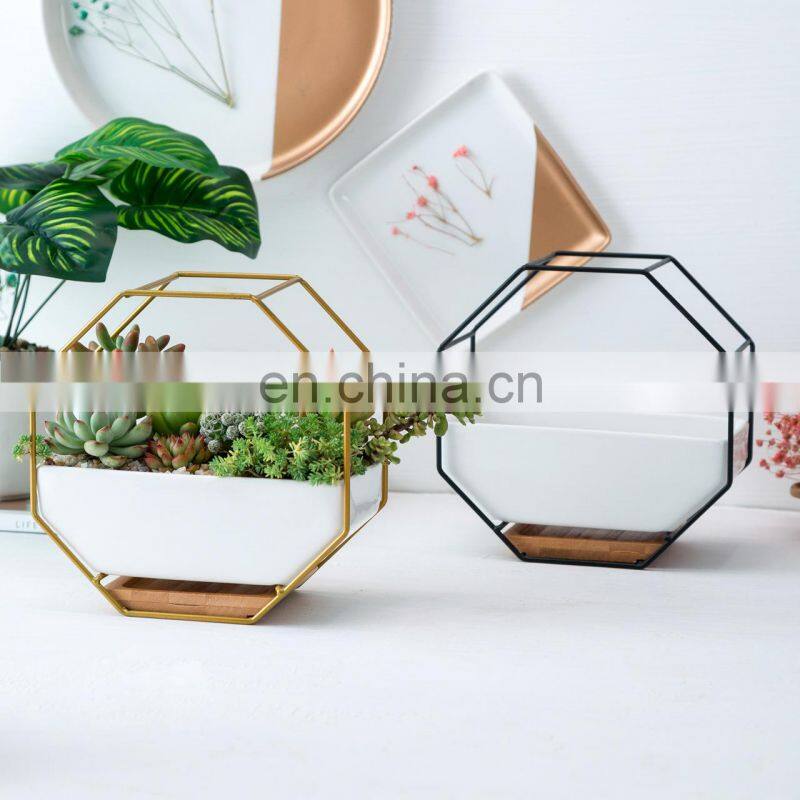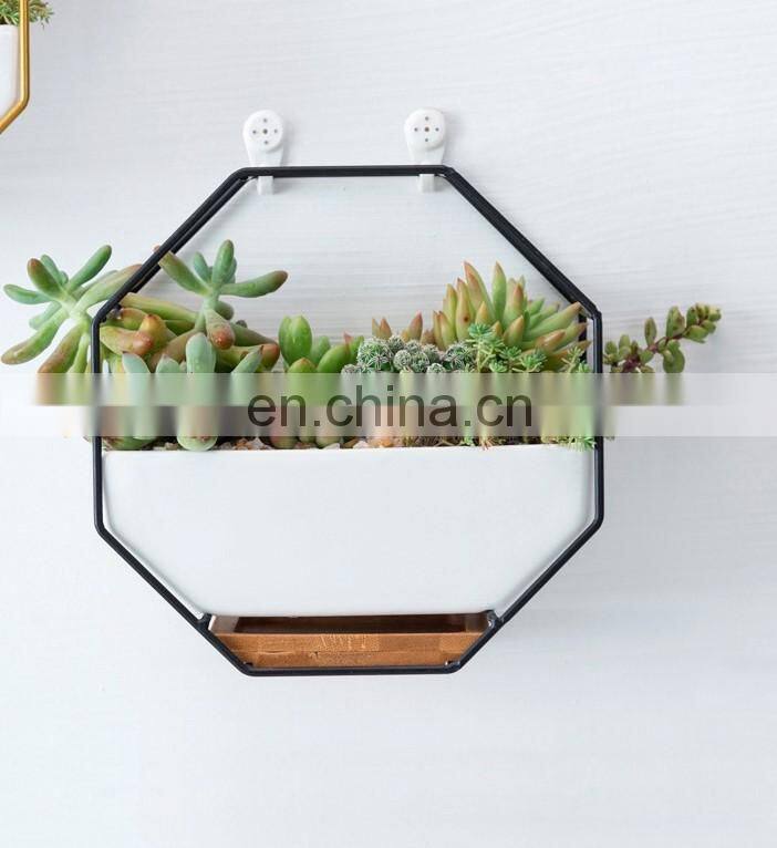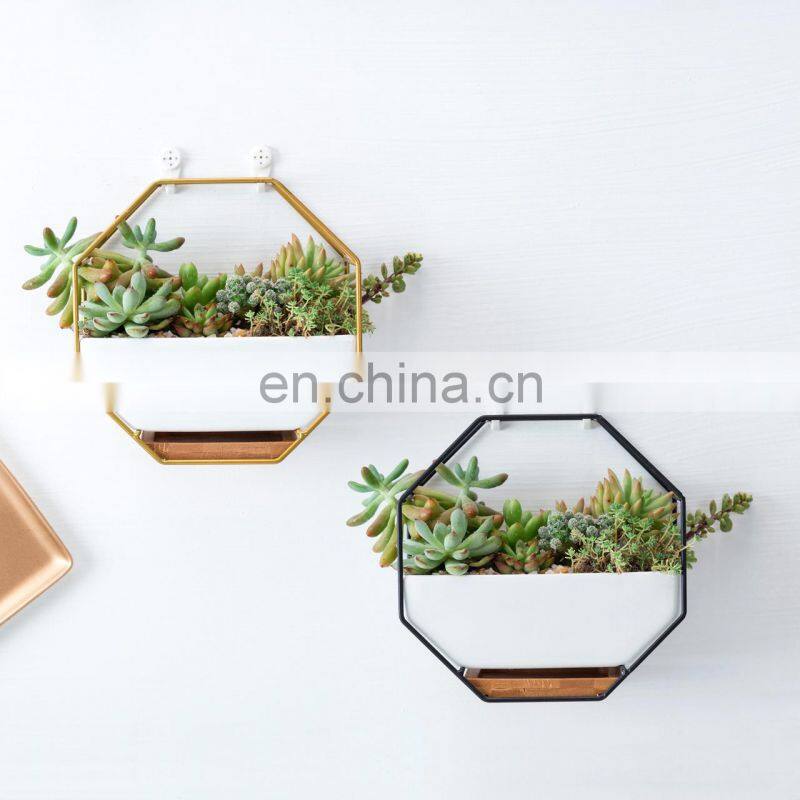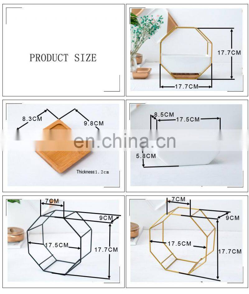 Modern Decorative Succulent Wall Mounted Gold Luxury White Pot Indoor Flower Ceramic Pot With Iron Frame