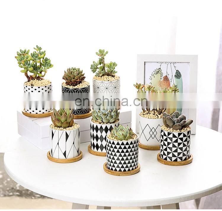New Geometric Black and White Succulent Flower Pot Ceramic Straight Flower Pot