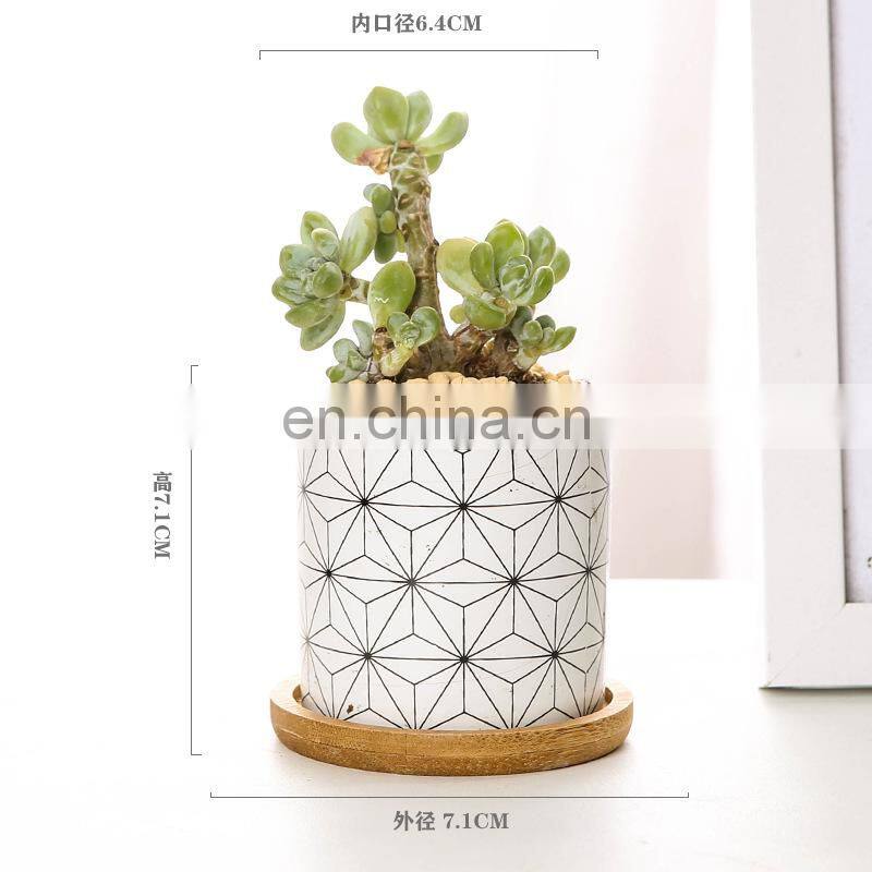 Round Desktop Decoration Ceramic Succulent Planter Plant Flower Pots Indoor Wood