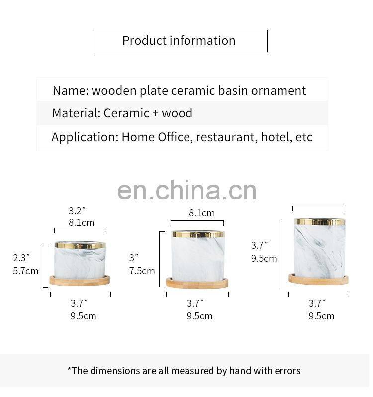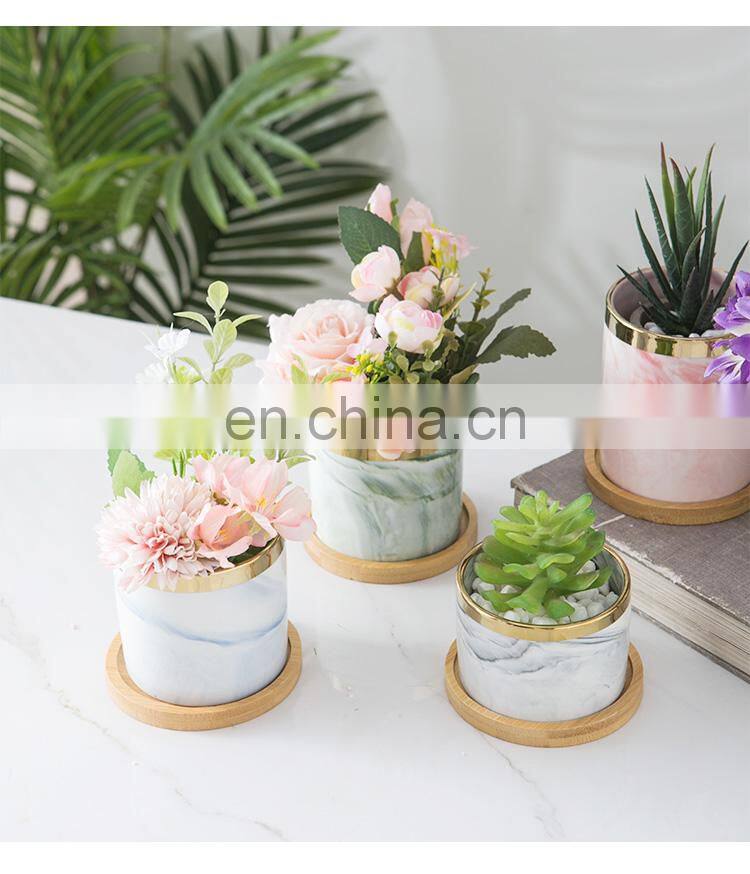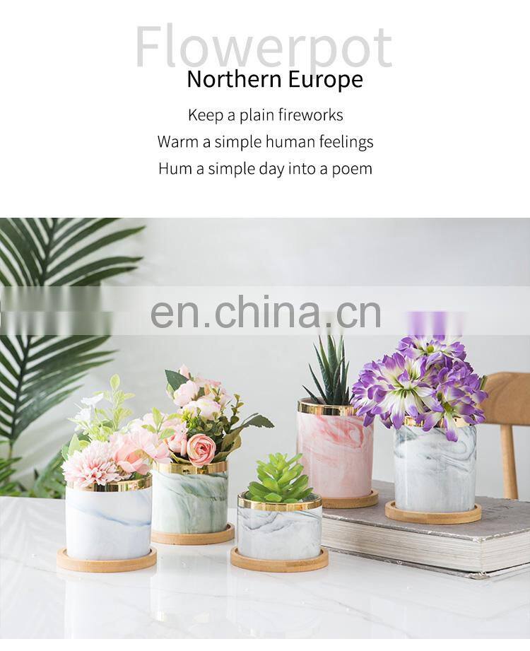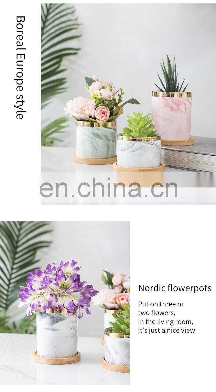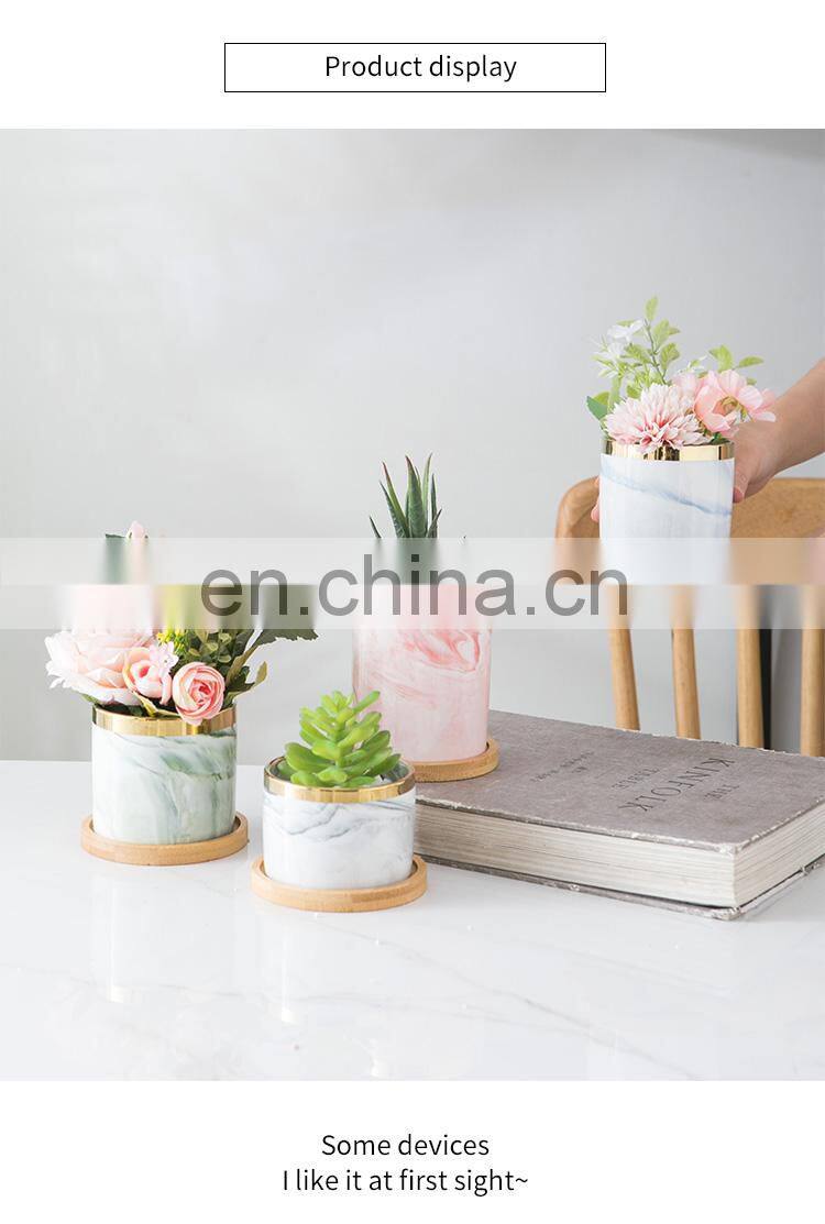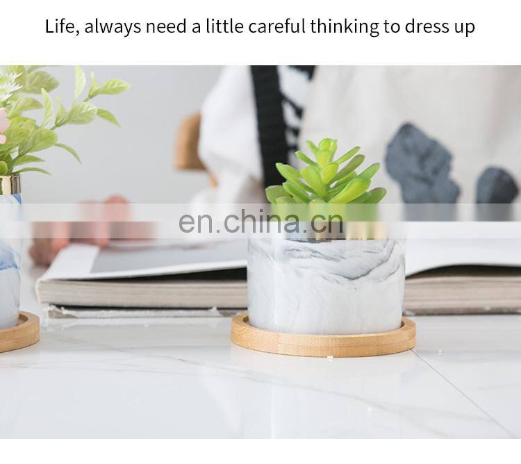 Nordic Marble Luxury Small Ceramic Succulent Planter Pot With Bamboo Tray